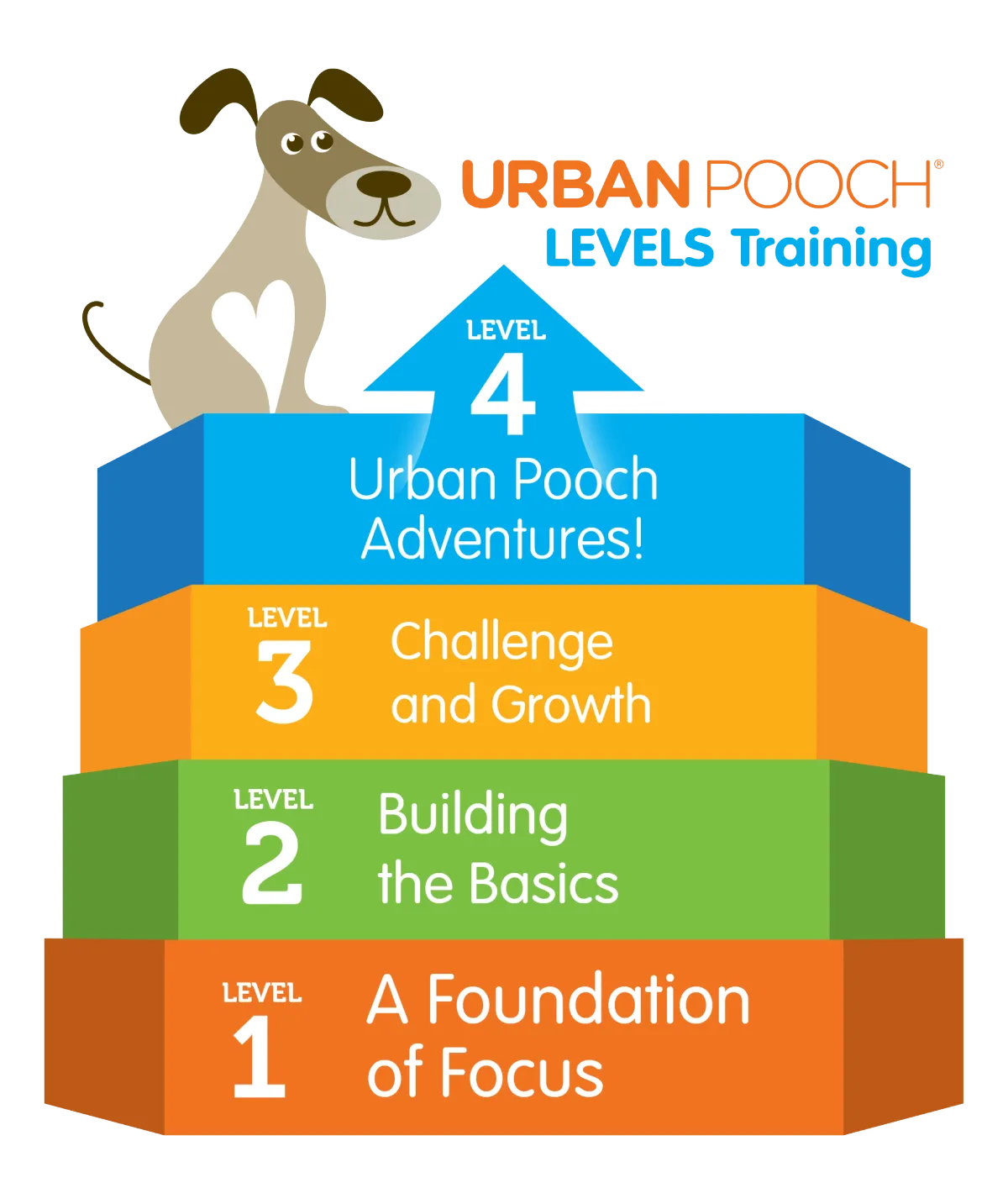 Urban Pooch LEVELS is an innovative approach that emphasizes real-world manners and life skills for dogs in the city, while respecting each dog's individual journey.