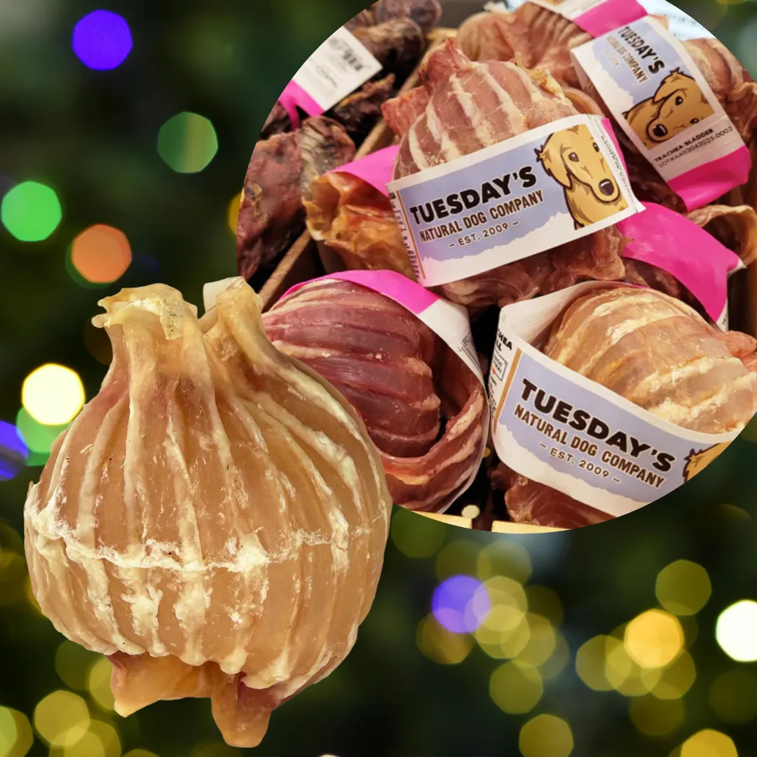Treat your dog to a wholesome holiday chew with Beef Trachea Balls from Tuesday’s Natural Dog Company!