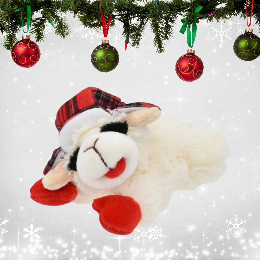 A holiday classic with a festive twist, the Fur Trapper Lamb Chop from Multipet is the perfect cuddle buddy and squeaky toy all in one.